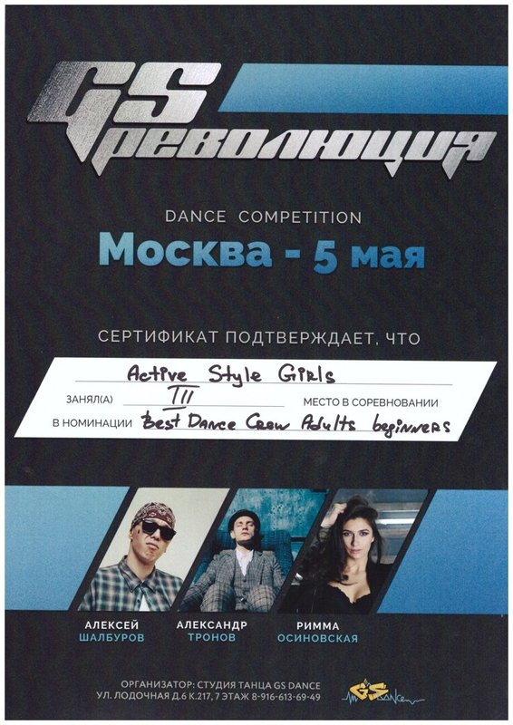 Все мы учились в школе, многие закончили высшее учебное заведение. Однако в школе танцев Active Style мы верим, что развитие не должно останавливаться никогда!